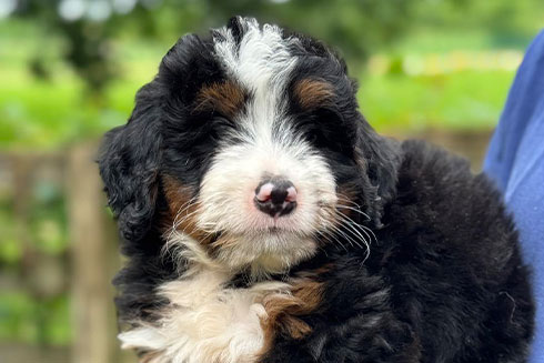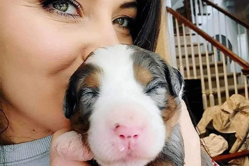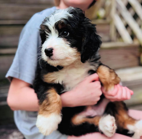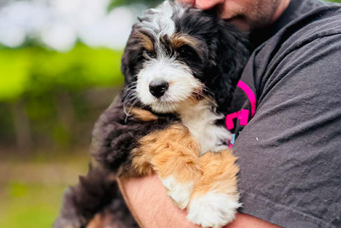 I wanted something intelligent, trainable and lovable without the shedding and that is when we launched Happily Ever After Doodles in 2019 with Pebbles our Goldendoodle. I love Goldendoodles but as I started to research what are the calmest breeds I saw that Bernese Mountain Dogs were one of the top 5 breeds that are calm in nature. So I said why not mix it with a Poodle and create Bernedoodles because it also has been proven to increase their life span and better the health of both breeds. So the Bernedoodle was the obvious choice for us and families who are looking for companions or even therapy dogs.